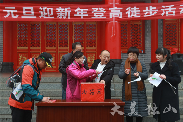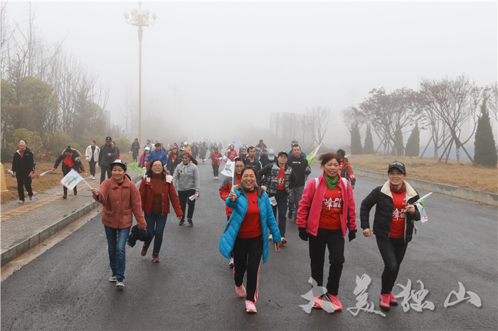 活动当天,虽然天空雾色朦胧,但丝毫没有阻挡选手们喜迎新年的热情,大家早早来到古风博物院乐殿门前签到并合影留念,经过热身后,选手按照工作人员的指引有序地进行排队等候。随着一声令下,选手们冲出起点,开始了徒步登高比赛征程。