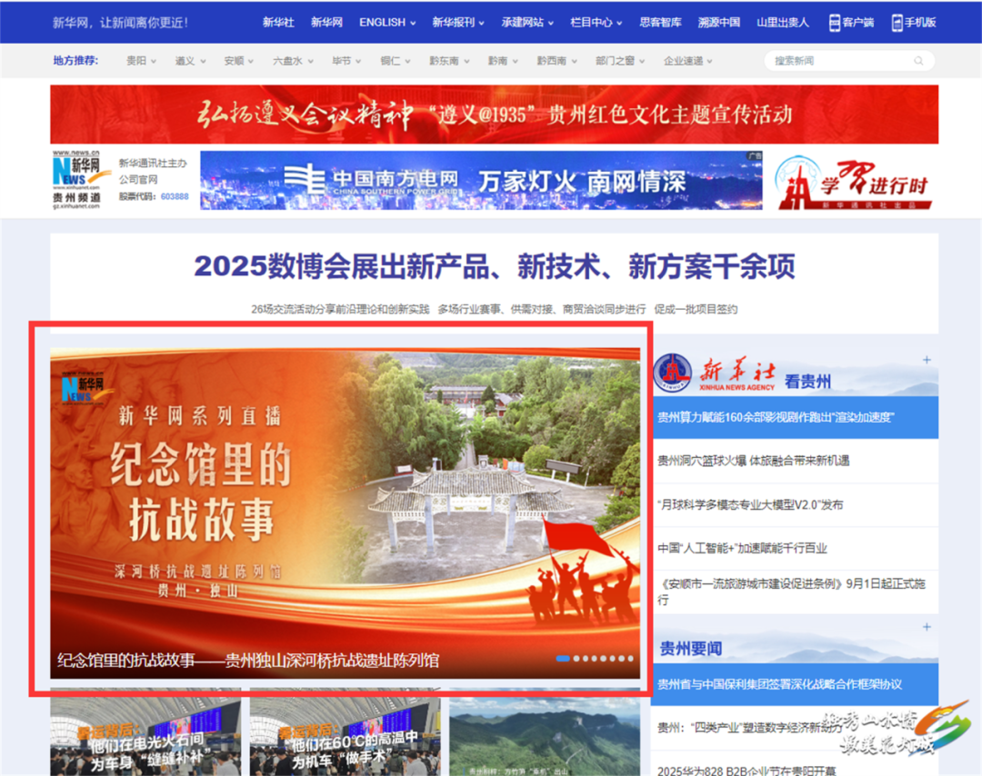 新华网:9月1日,新华社、新华网部分平台置顶推荐由独山县融媒体中心采编制作的《纪念馆里的抗战故事——贵州独山深河桥抗战遗址陈列馆》,以直播的形式,通过主持人和嘉宾现场互动,让广大群众深入了解馆内各项历史文物和英烈的抗战故事。