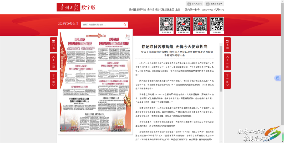 贵州日报、天眼新闻:9月4日,多平台先后刊发《铭记昨日苦难辉煌 无愧今天使命担当——全省干部群众收听收看纪念中国人民抗日战争暨世界反法西斯战争胜利80周年大会》,报道了9月3日,贵州省干部群众收听收看纪念中国人民抗日战争暨世界反法西斯战争胜利80周年大会,其中,独山县教师石龄豪感想被采用。