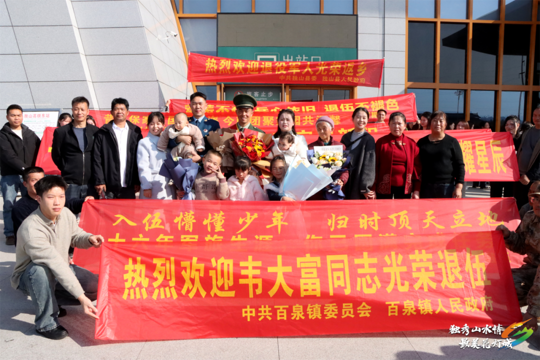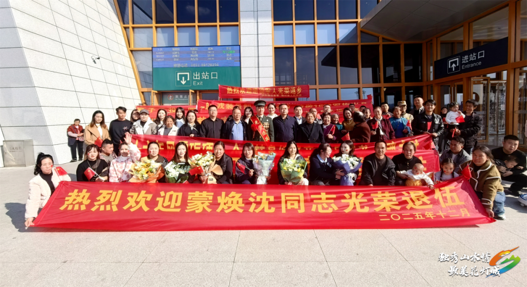 昔日从军报国志,今朝荣归故里时。12月1日,在独山东站,随着一列高铁缓缓驶入站台,独山县两名服役16年的退役老兵蒙焕沈、韦大富圆满结束军旅生涯,身着军装、佩戴军功章光荣返乡,开启人生新的征程。