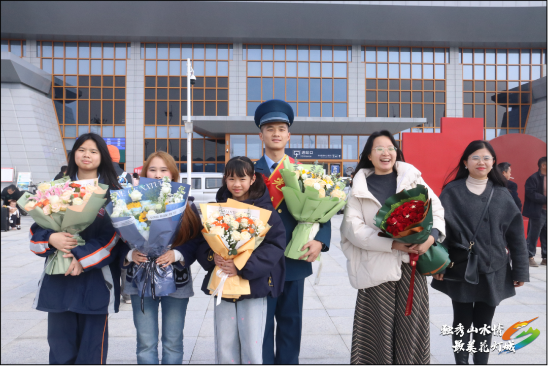 现场,工作人员及家属早早就等候在出站口,满眼都是期待与激动。“欢迎退役军人光荣返乡”的横幅在阳光中格外醒目,灿烂的鲜花传递着家乡人民的深情与敬意。