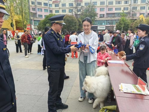 为进一步增强县城区广大居民文明养犬意识,促进居民养成文明守法的好习惯,营造一个安全、和谐的生活环境,2024年3月31日,以新时代文明实践活动为契机,由独山县综合行政执法局牵头,联合县委宣传部、井城街道办事处、县公安局、县住房和城乡建设局、县农业农村局、县卫生健康局在中南广场开展“争当文明养犬人·共建和谐新生活”宣传活动。