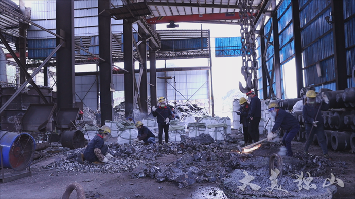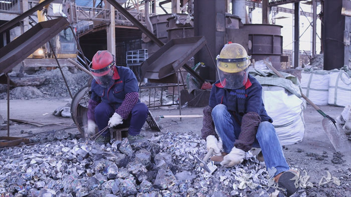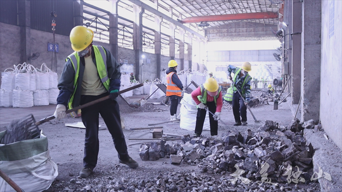 一枝独秀不是春,同样热火朝天开工的还有金孟锰业有限公司。车间里,工人们戴着安全帽,有序地进行冶炼、机修、成品加工、包装等工作,大家各司其职,全力促生产、保供应,展现着新年新气象。