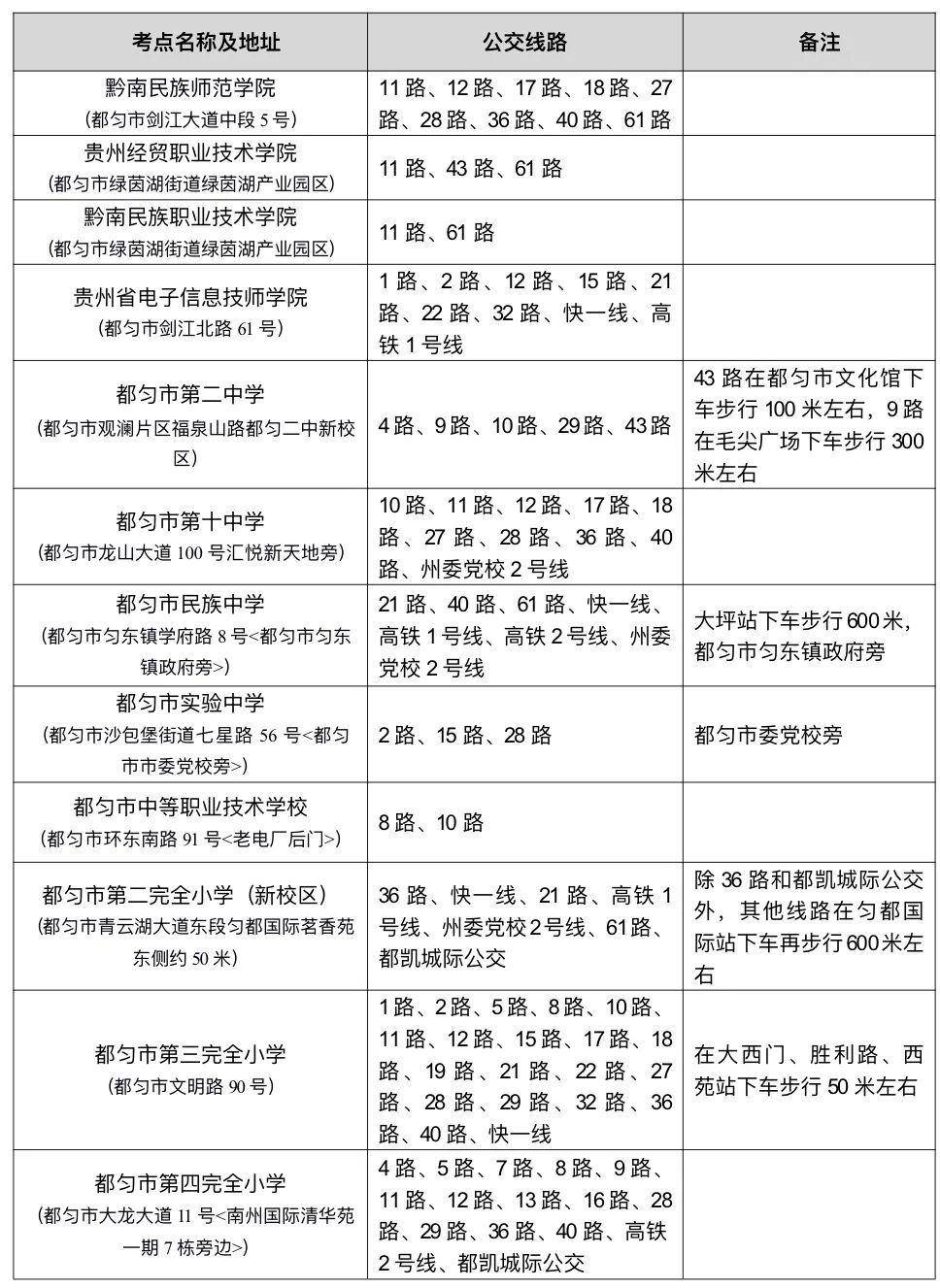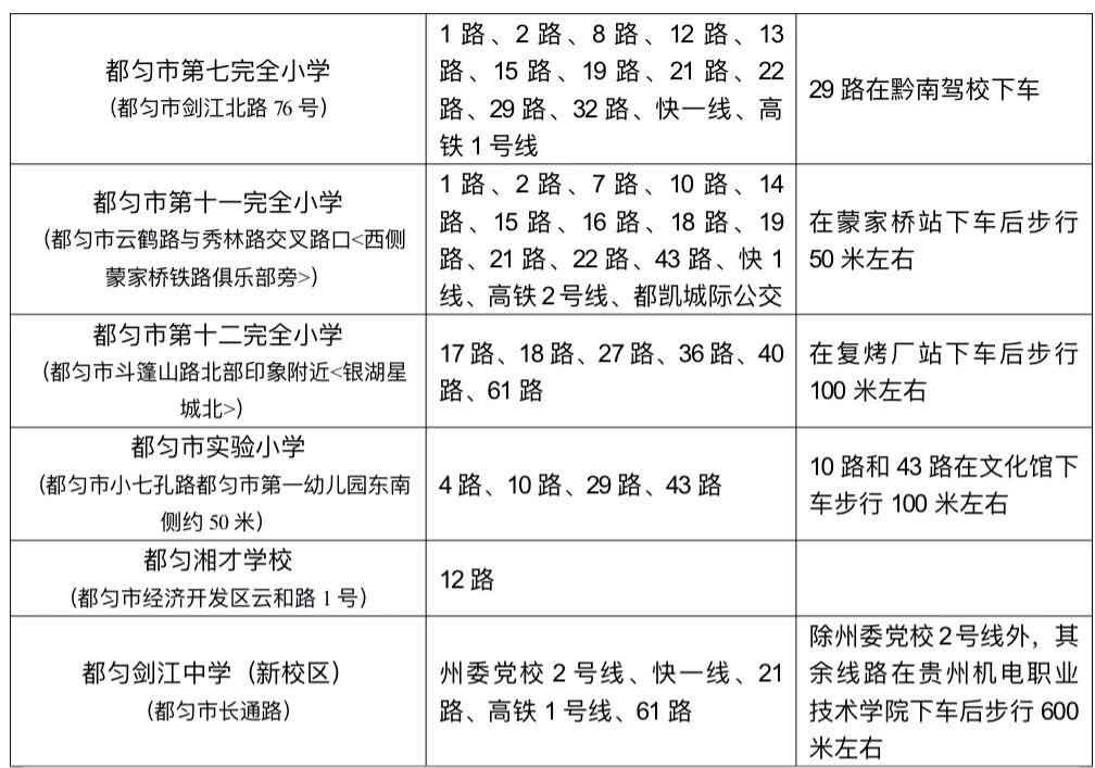 3、独山县考点及公交车线路分布情况如下:
